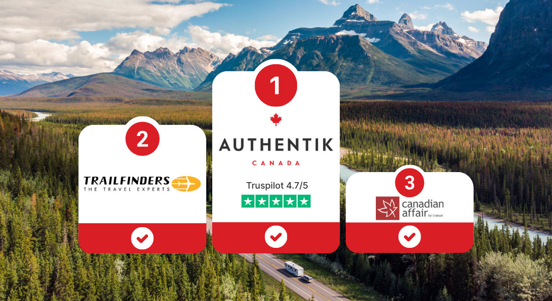 | 1 | Authentik Canada | Local agency based in Canada, online planner, dedicated advisor, possibility to book a vehicle only, detailed roadbook | Only offers Canada (and USA via Authentik USA) | 4.7/5 (from over 2300 reviews) |