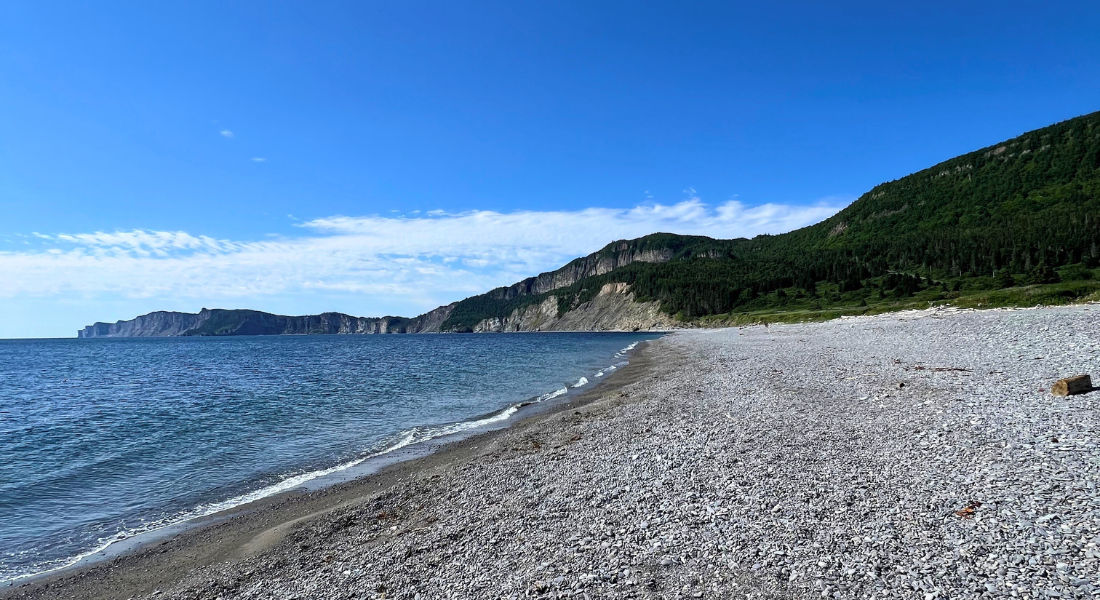 Au bout du parc national Forillon, la plage de Cap-des-Rosiers impose le décor. Falaises abruptes, golfe à perte de vue, mélange de sable et de galets sous les pieds : ici, la nature ne fait pas dans la discrétion. Par beau temps, l’horizon semble infini et l’on sent clairement qu’on est arrivé à l’extrémité de la Gaspésie.