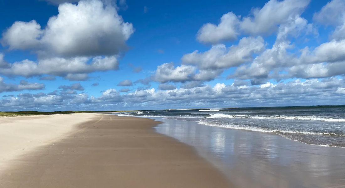 Avec ses près de 8 kilomètres de sable blond, la plage de la Grande Échouerie semble ne jamais vouloir s’arrêter. Le golfe du Saint-Laurent scintille sous le soleil et les dunes prennent une teinte dorée en fin de journée. Difficile de ne pas s’arrêter quelques heures de plus que prévu.
