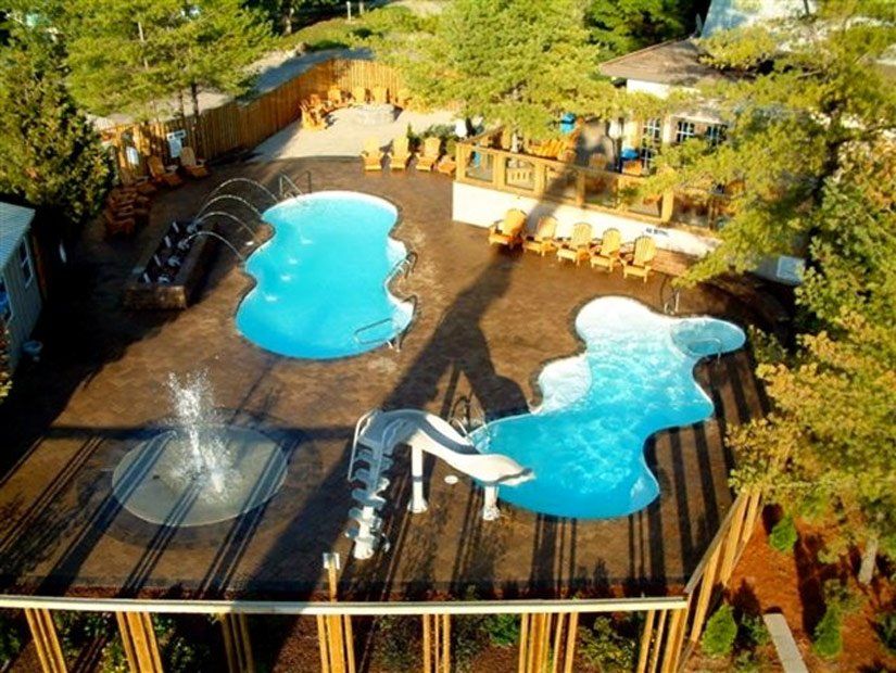 Détendez-vous et profitez de notre parc aquatique comprenant deux piscines chauffées, une glissoire, des fontaines mousseuses, un bain-tourbillon familial, des jeux d’eau et un bain-tourbillon pour adultes.